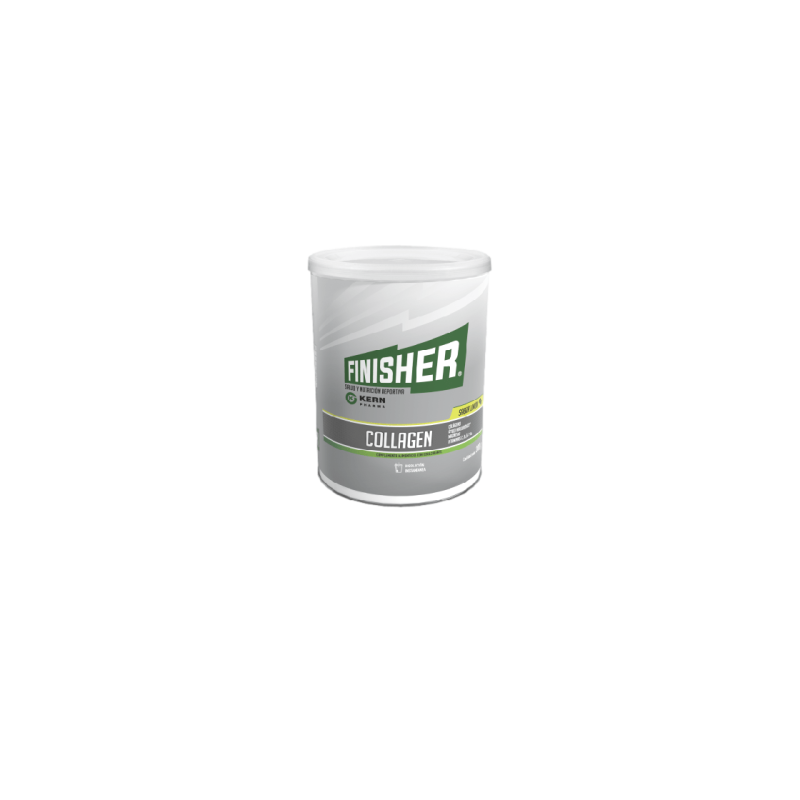 Finisher Collagen es un complemento alimenticio a base de colágeno hidrolizado, ácido hialurónico, magnesio y vitaminas C, B1, B2 y B6. Contiene proteínas que contribuyen a aumentar y conservar la masa muscular y al mantenimiento de los huesos en condiciones normales. La vitamina C contribuye a la formación normal del colágeno para el funcionamiento normal de los huesos y cartílagos.